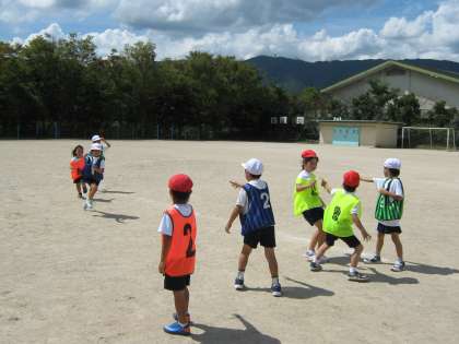 この日は,1〜3年生の対抗リレーの練習をしました。入場や退場の練習と実際に走ってバトンパスの練習をしました。