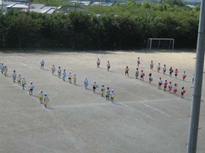 今日は,太鼓の音に合わせて入場し,隊形をつくり踊りました。隊形をつくるのもずいぶんうまくできるようになりました。
