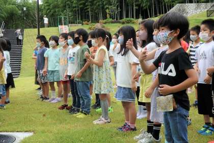 竹林公園のリニューアル事業に参加しました。あいにくの雨天……と思いきや,発表やその後の公園遊びの時には雨がやみ,練習の成果を発揮することができました。