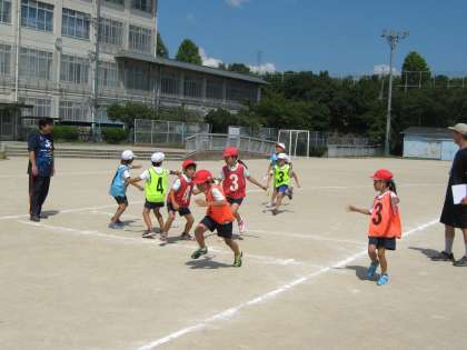 今日(9月14日) 運動会の「対抗リレー 1〜3年」の練習をしました。
