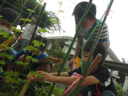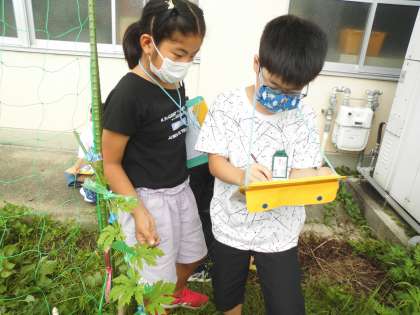 定規を使って,高さを測るだけでなく,においをかいだりもしていました。