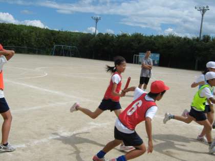 9月15日に,選択種目「対抗リレー(4〜6年生)」の練習をしました。