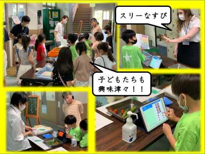 子どもたちも本格的にお金のやり取りができたり,便利なレジを使えたりするのでとても意欲的に活動していました。