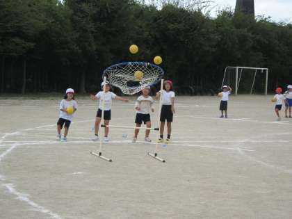 2年生は,個人走「ボールでガッツ!」の練習をしました。ボールを投げたり運んだりしながらゴールを目指します。運動会に来て,ボールをだれがうまく扱うか見てくださいね。