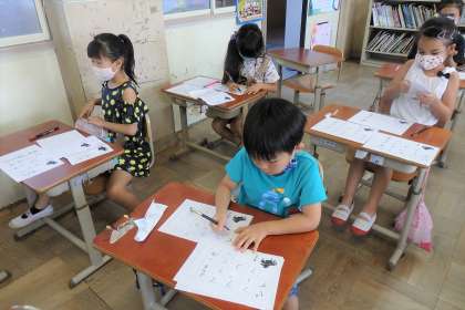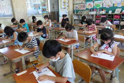 書写の学習で,2年生はペン習字にチャレンジしました。1度書いたら書き直しができないペン。『とめ』や『はらい』に気を付けながら,慎重にペンを動かしました。