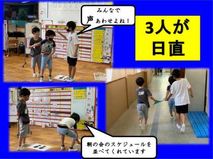 2年生をリーダーにして楽しそうに朝の会をしていました。