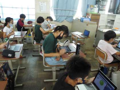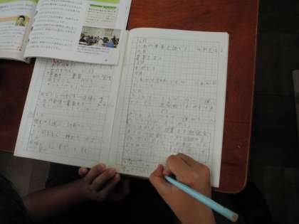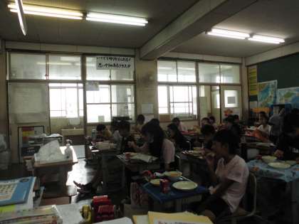 しっかり食べ,暑さに負けず外遊びをした後は,社会科での米作りの学習です。