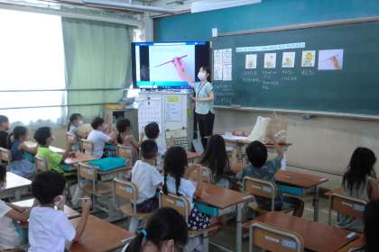 今日は栄養教諭からお箸の正しい持ち方を教えてもらいました。