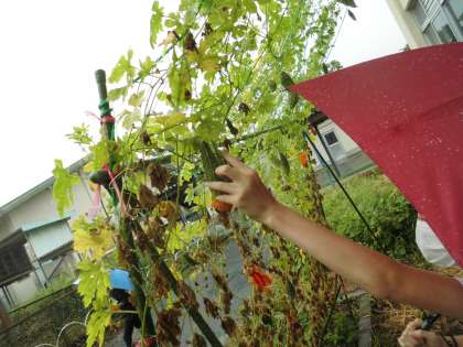 雨のため,急いで朝,ツルレイシの様子を写真にとりました。