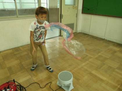 送風機をいくつも寄せ集めて,風の力を強くしている子もいましたよ。