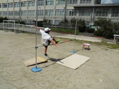 高とびの学習が始まりました。高みを目指して頑張っています。