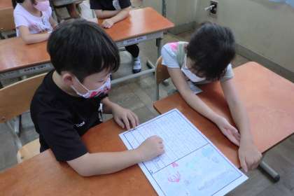 そのあと,クラスのみんなに 隣の友達の夏休みにしたことを発表しました。