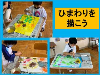 図画工作科の学習で「ひまわりを描こう」に取り組んでいます。