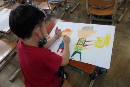 主人公の周りに少しずつ描きたい登場人物が増えてきました。近くにいるのは,友だち?家族?それともお客さん?絵の中の世界ががどんどんにぎやかになっています。