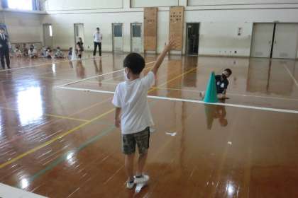 道路の歩き方や渡り方を学習したあと,体育館に用意された道路を歩いてみました。