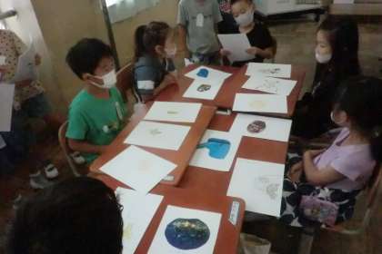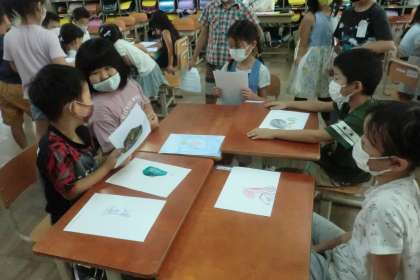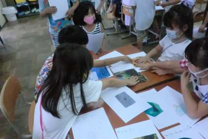 「うみのかくれんぼ」の学習で,「かくれんぼしている生き物」を本や図鑑から選び,その生き物の隠れている場所や体の仕組み,隠れる方法などをカルタにかきました。