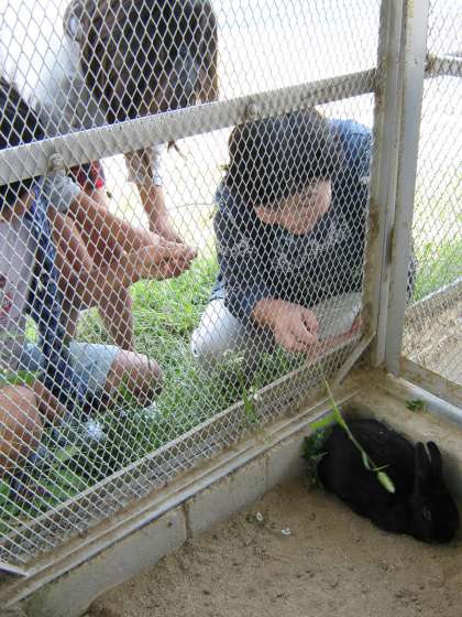 まだまだ,新しい環境になじんでいない様子で,1わは小屋の中の隅に,もう1わは小屋の中にある小さな箱の中にいました。「早くなれて,ぴょんぴょんと跳び回ってくれればいいなあ。」と,見ていた子どもたちが話していました。