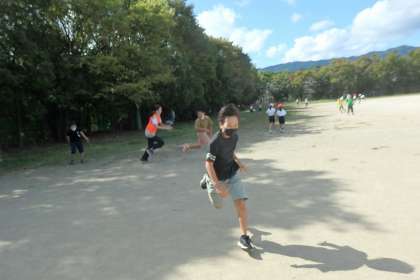 中間休み,とても楽しそうに先生と遊ぶ4年生たちを発見!みんな遊びでしょうか。とっても盛り上がっていました。