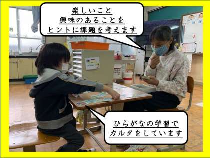 児童にとっては絵札のイラストがわかりやすく,指導者と楽しみながら学習できるので積極的にひらがなの学習に取り組めます。