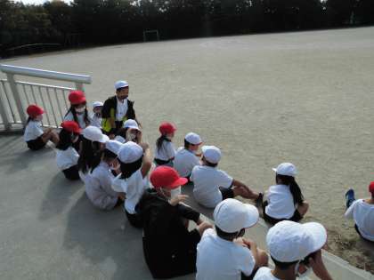 体育の後,お天気が良かったので,運動場に出てくじらぐもを探しました。