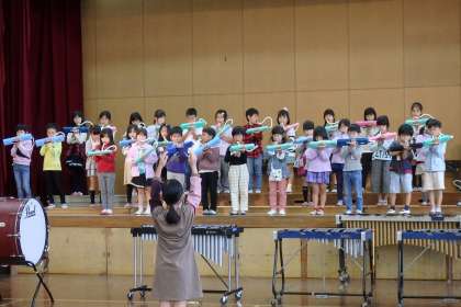 木曜日はいよいよリハーサル。今日は,繰り返し練習ができる最後の日です。昨日は月曜日だったこともあり,自信なさげな小さな音でしたが,今日は昨日よりも自信をもって大きな音で演奏することができました。