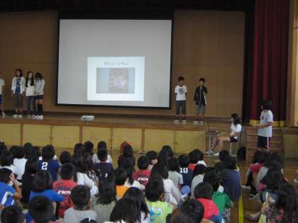 10月7日の児童集会では,図書委員会・放送委員会・代表委員会よりの発表がありました。