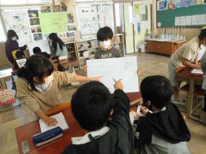 次の体育も頑張っていきましょう。調べた内容をグループごとに発表する形で総合的な学習も行っています。京都市の様々なモノづくり会社について,楽しく,そして深く学んでいる4年生です。