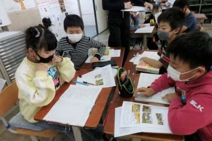資料を調べる姿も,似た問いをもった友だちと交流する姿も,とても集中できていて素敵でした。知らべた内容は,明日からまとめてブース交流をするそうです。頑張ってくださいね!