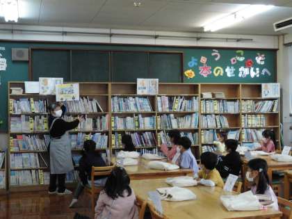 学習した後に,背表紙についているシールと本のタイトルだけで,その本を探すゲームをしました。