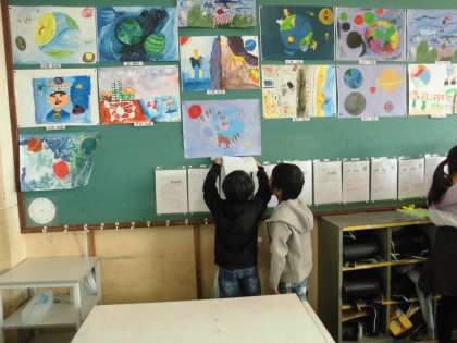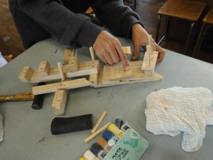 クリエイター。想像力を働かせて図工の作品の仕上げに入りました。