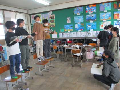 ただ気持ちを込めて読むだけでなく,小道具を作ったり,ふりをつけたり,各グループでたくさん工夫が見られます。