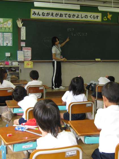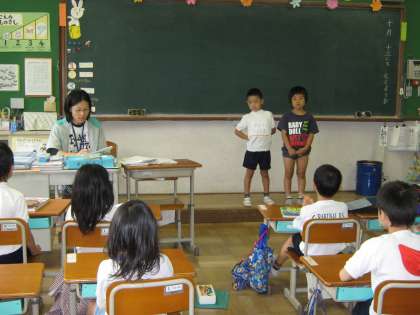 1年生は,子どもが司会進行をして朝の会を進めています。朝の会の中で,必要なことを担任が話すようにしています。