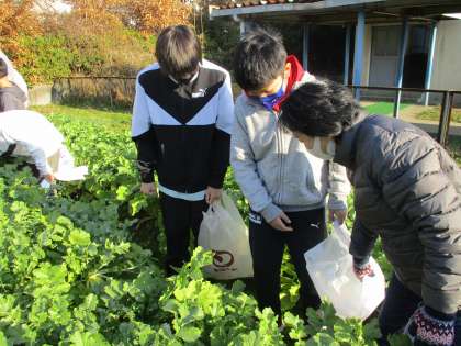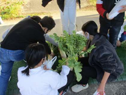 福西小学校の畑で少年補導委員のみなさんが育ててくださった大根を収穫させていただきました。