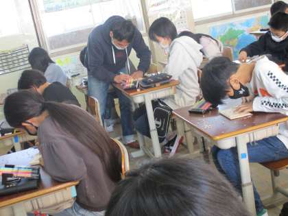 彫刻刀の持ち方,彫り方を丁寧に教えて頂き,市松模様に挑戦しました。