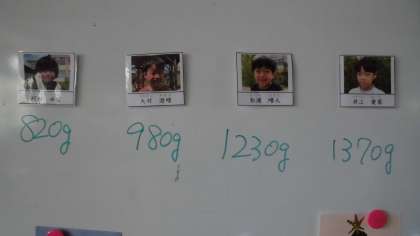 秤で計測した後,重い順に並べて,〜グラムの読み方の学習をしました。