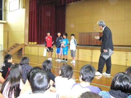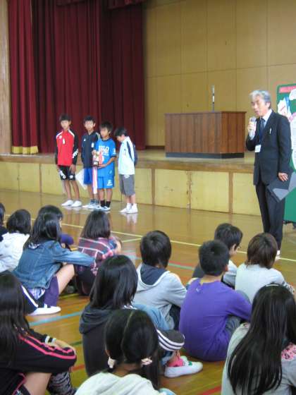 後期始業式のあと,全校児童の前で紹介し,全校児童から祝福の拍手をもらいました。