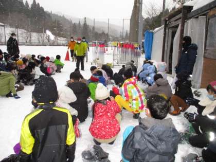宿泊棟から少し歩いたところに,歩くスキーを行うグランドがあります。みんなで歩いて向かいました。ここにも雪がいっぱいです。