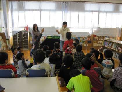 今日は,子ども達が楽しみにしている月に一度のPTA読書クラブの皆さんによる「おはなし宝石箱」の日です。