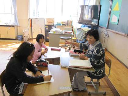 つくし学級の国語の時間です。この日は,「文を書こう」という学習で,主語や述語を意識しながら,「いつ」「どこで」「何を」をつけたして,さらに分かりやすい文にする学習をしました。