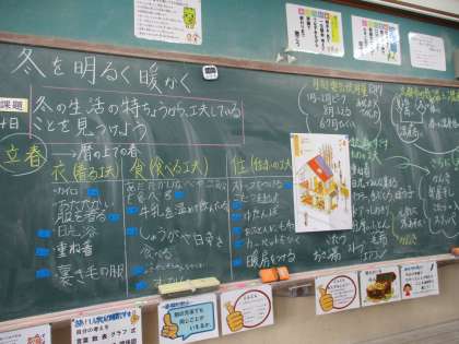 衣・食・住において,どのような工夫を取り入れることで寒い冬を少しでも快適に過ごすことができるのか,教科書を使ったり友だちと交流したり,時には実験をしたりしながら調べてきました。