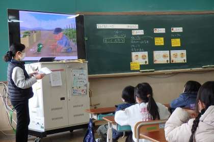 可愛いピーマンくんの読み聞かせを聞きながら,自分だったらどうやって食べるかということを考えて友だちと発表し合いました。