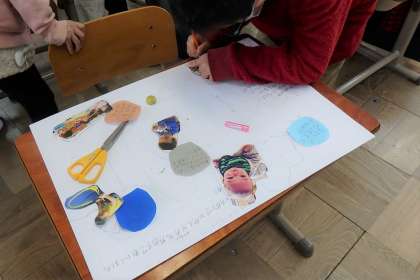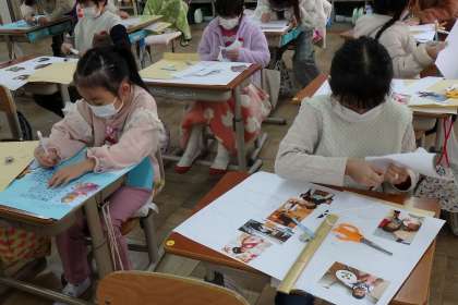自分の得意なことや成長の記録を楽しそうに書いている姿を見ると,担任たちも嬉しくなります。今までの自分の軌跡……できあがりがとっても楽しみです!