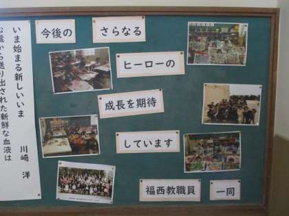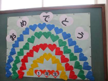 他学年や教職員が作ってくれた,卒業をお祝いする掲示物が学校中に溢れています。
