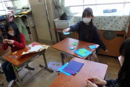 最後の活動になるかもしれない……ということで,飾りを1つ1つ丁寧に作ったり,タブレットで調べておもちゃを作ったり,どのグループも気合が入っています!