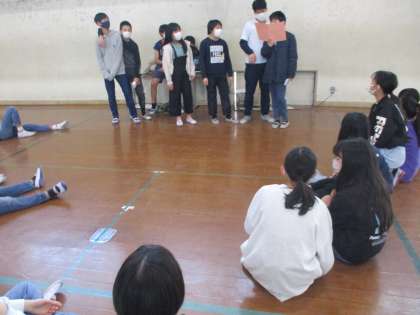 体育館で,王様ドッジボールと人狼おにごっこをしました。