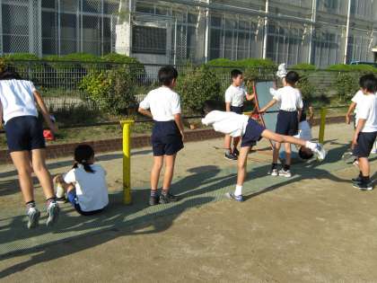 5年生は,体育の時間に鉄棒に取り組んでいます。この日が体育の授業で行う最後の時間となりました。どの子も自分の技を先生に見てもらっていました。