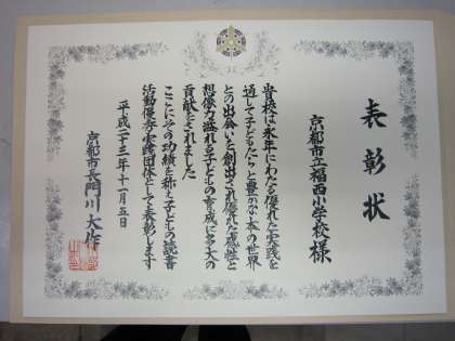 本年度は,本校が「京都市子どもの読書活動優秀実践団体表彰 市長表彰」をいただきました。