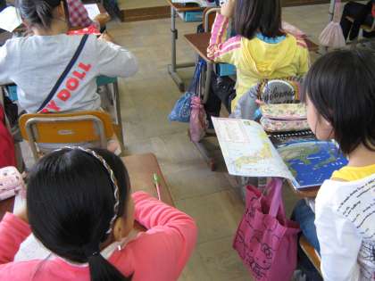 「40番は何県?」「福岡県だよ」「あっそうか」というように教え合いながら,都道府県の名前を地図に書き込んでいました。