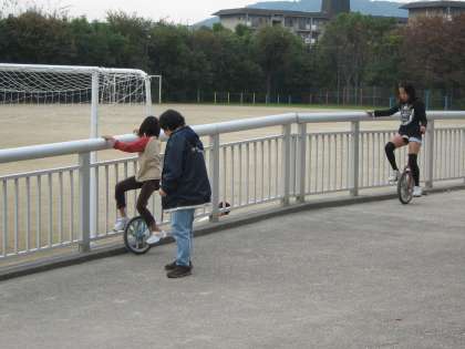 つくし学級では,一輪車に乗れるようにと練習に励んでいます。