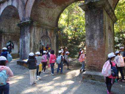 この日(11月17日)は,水路閣,ねじりまんぽ,疏水記念館,インクラインを見学しました。子ども達は,それぞれの見学場所で興味深く見ていました。